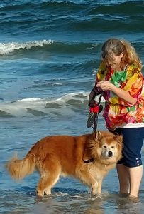 My Chikita (Chow-Akita) Haiku prefers just to sail around the pool in his boat! Pay attention and go your dog’s speed. Just like us, they learn by example, but also just like us…if they have a bad first experience, it’s so much harder to attempt a second!